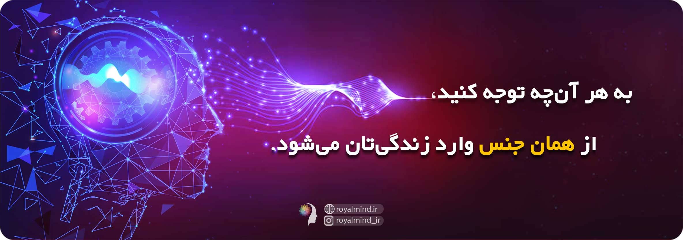ما در هر لحظه با افکارمان (که اغلب به صورت ناخودآگاه هستند) در حال ارسال فرکانسهایی به جهان هستی (کائنات) هستیم و جهان دقیقاً مانند یک آینه عمل میکند؛ اتفاقات، شرایط، فرصتها، اشخاص و ایدههایی در زندگی ما پدیدار میکند، که کاملاً منطبق و همسنگ با فرکانسهای ارسالی ماست.