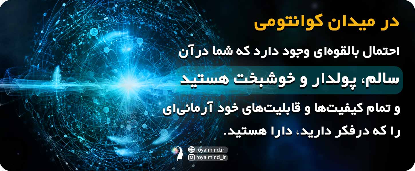 این یعنی در میدان کوانتومی احتمال بالقوهای وجود دارد که شما در آن سالم، پولدار و خوشبخت هستید و تمام کیفیتها و قابلیتهای خود آرمانیای را که در فکر دارید، دارا هستید.