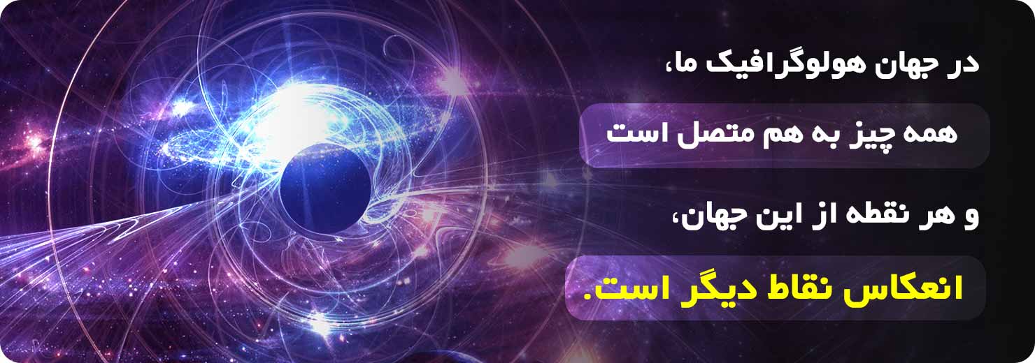 تا الان مفهوم هولوگرام را درک کردید و متوجه شدید که در آزمایش دو فوتون امکان برقراری سیگنال بین دو فوتون وجود نداشته، به نظر شما منظور از «جهان هولوگرافیک» چیست و چه ارتباطی با موضوع آزمایش دو فوتون دارد؟