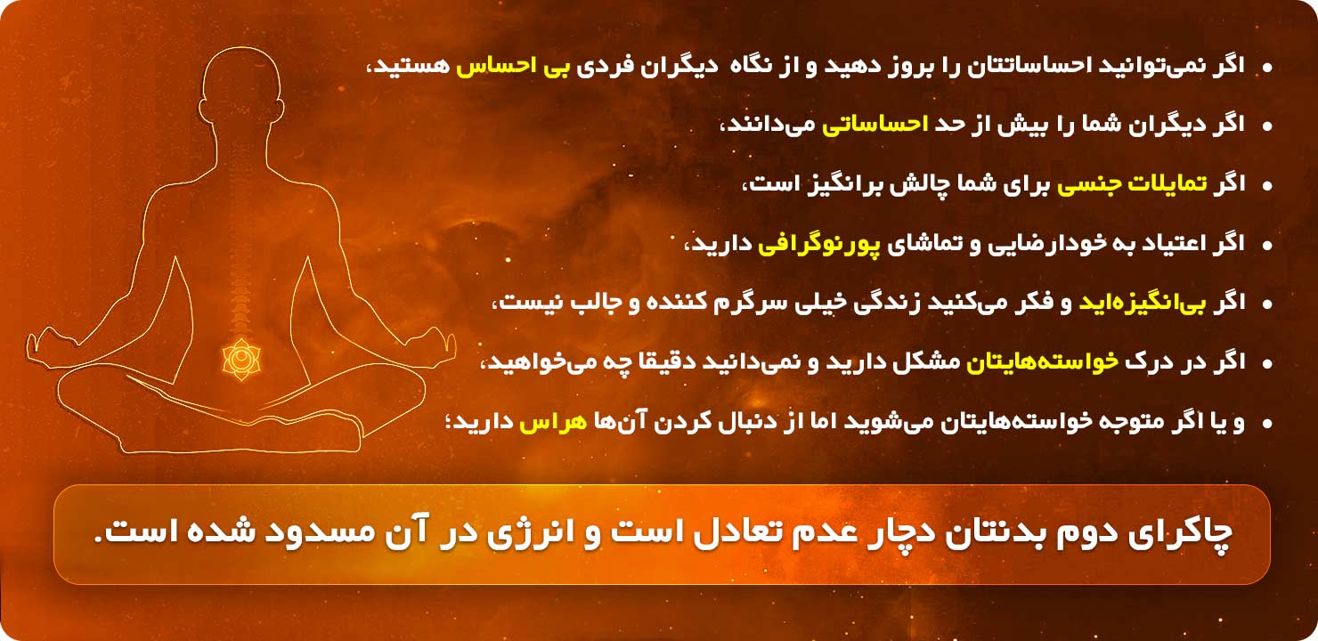 سوال مهم 2: عدم تعادل چاکرای دوم چه مشکلاتی را در بدن به وجود میآورد؟
