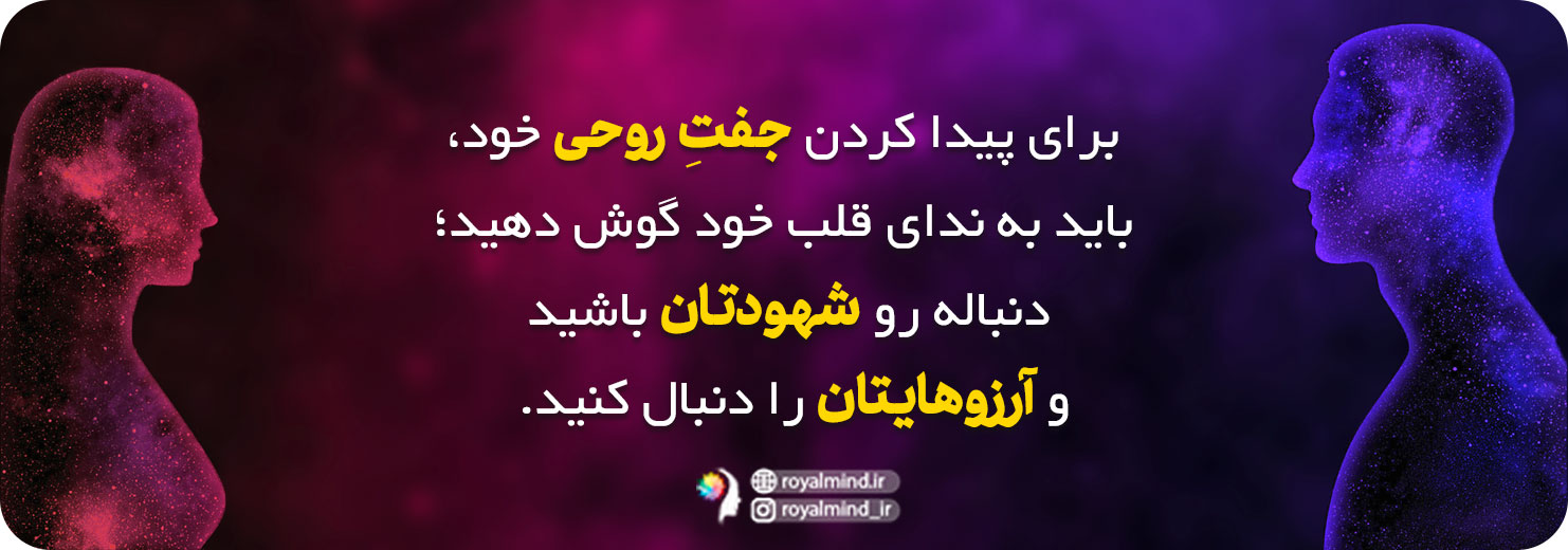 • برای پیدا کردن جفتِ روحی باید به ندای قلبتان گوش دهید، دنبالهرو شهودتان باشید و آرزوهایتان را دنبال کنید.