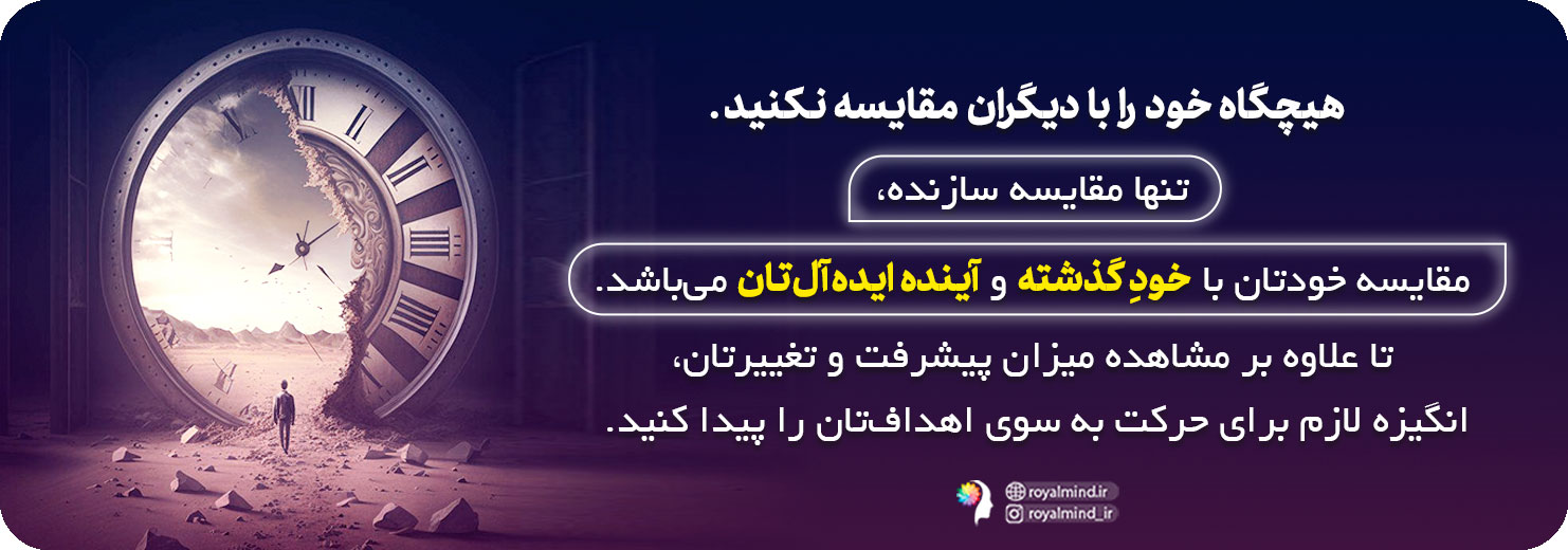 نکته مهم این است که باید متعهد به ایجاد کردن تغییراتی درونی شوید تا بتوانید دیدگاهتان را نسبت به خود و زندگی تغییر دهید. یکی از موارد دیگری که بسیار آسیبزننده است مقایسه کردن خود با دیگران است. شاید گاهی اوقات به اطراف نگاه کنید تا ببینید دیگران چه کارهایی انجام میدهند یا چه چیزی کم دارید، اما دلیل آن هر چه باشد این است که شما فردی منحصر به فرد با تجربیات منحصر به فرد هستید. لازم نیست خودتان را با دیگران مقایسه کنید و زندگیتان را مانند آرزوهای دیگران و یا از روی آنها بسازید. مقایسه کردن بسیار آسیبزننده است. تنها باید خود را با گذشتهتان مقایسه کنید. همچنین با مقایسه کردن خود با آیندهی ایدهآلتان انگیزهای برای حرکت کردن به سوی اهدافتان پیدا میکنید.