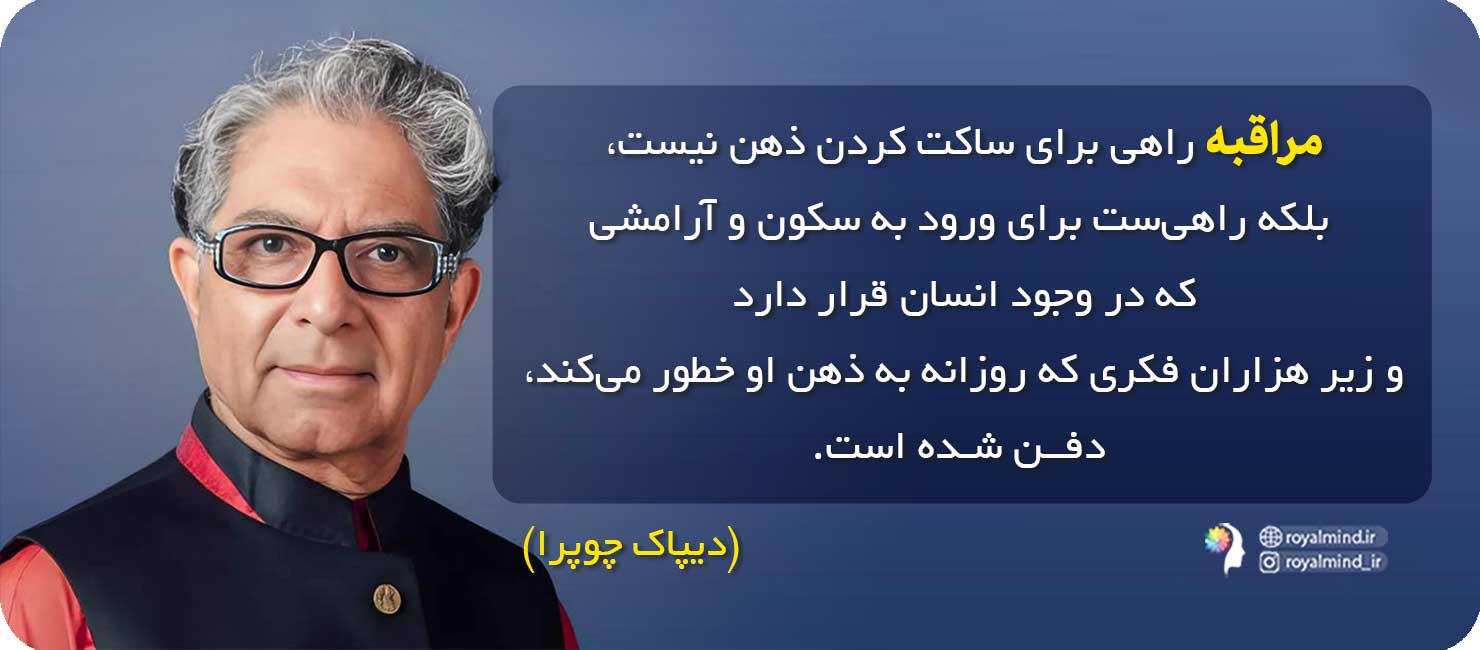 پیشنهاد ما برای شما: دانشمندان معتقدند که مراقبه بهترین تمرین برای رشد شخصی و افزایش عملکرد خود میباشد. برای اینکه بتوانید خودتان را متحول کنید و پیشرفتهای هیجانی، فکری و حتی معنوی در خود مشاهده کنید، و در عین حال از تمام مزایای مراقبه نیز بهرمند شوید، توصیه ما به شما "دورهی 6 فاز مراقبه" اثر "ویشن لاکیانی" (کلیک کنید)، میباشد که توسط مجموعهی رویالمایند ترجمه و تهیه شده و در اختیار شما قرار داده شده است.
