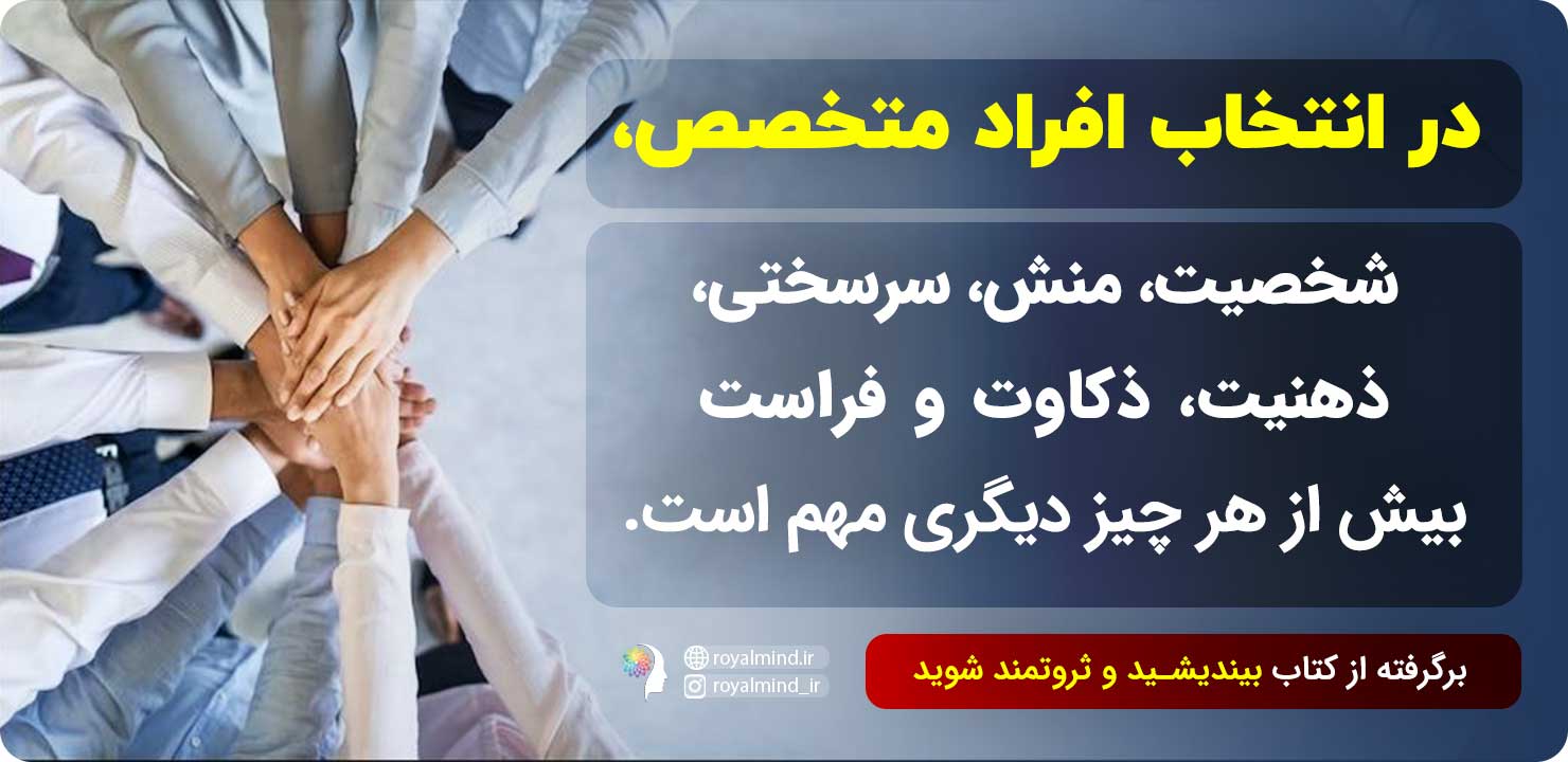 برای پیشرفت در هر زمینه کاری و کسب ثروت بیشتر، باید به تمامی اطلاعات تخصصی در آن زمینه دست پیدا کنید. شما میتوانید کمبود اطلاعاتی خود را با استفاده از افراد صاحب نظر و اندیشمندان جبران کنید. همانطور که گفتیم به دست آوردن ثروت انبوه نیاز به قدرت دارد و قدرت از طریق دانش تخصصی به دست میآید، اما این دانش لزوما نباید متعلق به شخصی باشد که ثروت را به دست میآورد. در نتیجه کسانی که مایل به کسب درآمد و ثروت هستند اما خود از دانش تخصصی لازم بی بهرهاند نباید نا امید شوند زیرا میتوان از متخصصین در زمینه مورد نظر کمک گرفت. طبق مباحث گفته شده ناپلئون هیل در کتاب بیندیشید و ثروتمند شوید، در انتخاب افراد، سرسختی، منش، شخصیت، ذکاوت و فراست بیش از هر چیز دیگری مهم است.