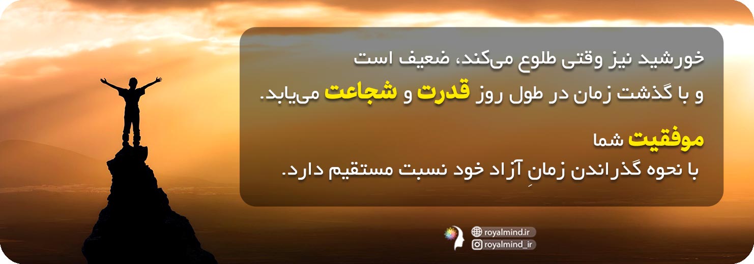 وقت خود را ارزشمند بدانید و نگذارید که هر کس به هر طریقی آن را از شما بگیرد. تک تک لحظاتتان را ارزشمند بدانید و برای آن برنامه داشته باشید. زمانی که به نتیجه مطلوبی نرسیدهاید، مطمئن باشید که یک جای کار مشکل دارد. پس بهتر است به فکر راه حل باشیم، آزمایش کنیم و از شکست اصلاً نترسیم. بهترین روش همین است، حتی زمانی که شکست خوردیم، تجربه همان شکست را در آزمایش بعدی خودمان اجرایی کنیم و مطمئن بشویم که به نتیجه مطلوب خواهیم رسید. به این ترتیب درک بهتری از این موضوع به دست میآوریم که چگونه وقت خود را مدیریت کنیم.
