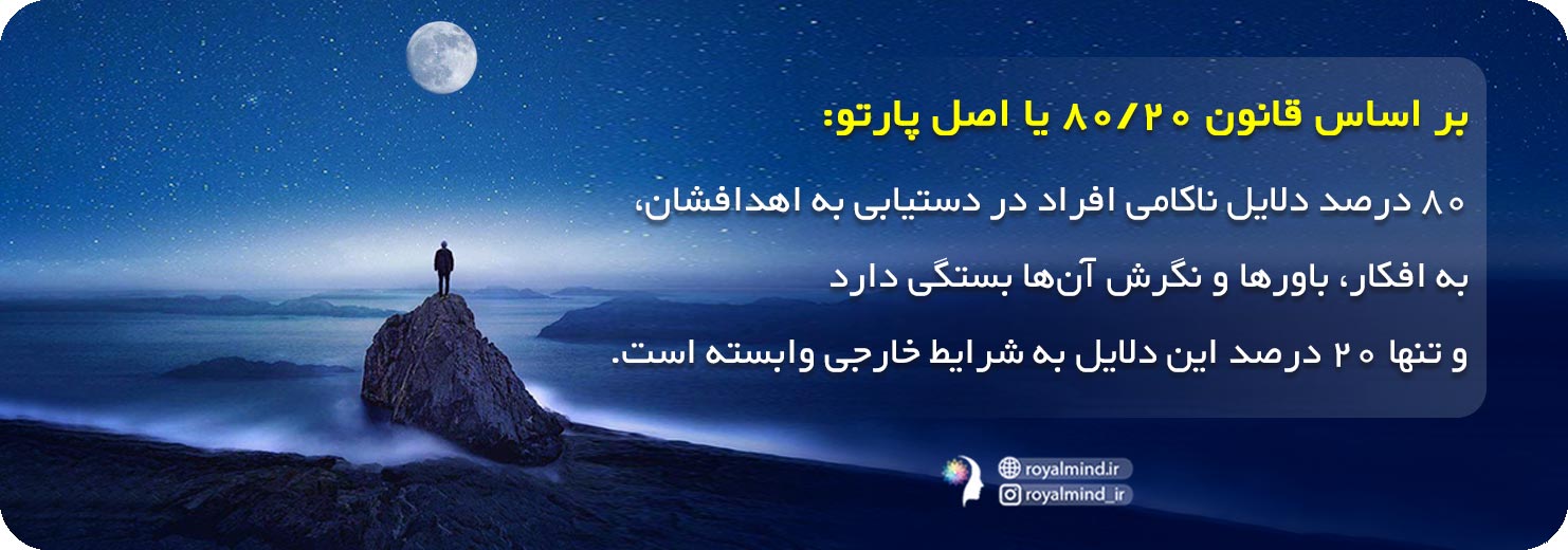 برایان تریسی بر این باور است که قانون 20/80 یا اصل پارتو، در مورد محدودیتها و نقاط ضعف یک کسبوکار صادق است. او اعتقاد دارد که 80 درصد دلایل ناکامی افراد در دستیابی به اهدافشان، به افکار، باورها و نگرش آنها بستگی دارد و تنها 20 درصد این دلایل به شرایط خارجی وابسته است. با این تفاصیل، برای رسیدن به موفقیت باید روی افکار و باورهای خود با جدیت کار کنیم و اجازه ندهیم که باورهای محدودکننده، خودشان را در قالب موانع و محدودیتهای خارجی به ما نشان دهند و سد راه موفقیتمان شوند.