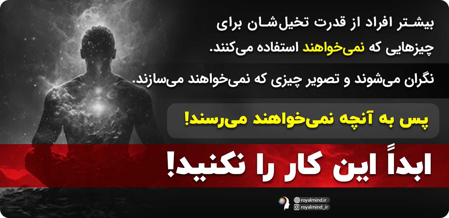بیشتر مردم از تخیلشان برای چیزهایی که نمیخواهند استفاده میکنند. نگران میشوند و تصویر چیزهایی که نمیخواهند را میسازند. پس به آنچه نمیخواهند میرسند! ابداً این کار را نکنید. به این فکر کنید که میخواهید چطور زندگی کنید؟ میخواهید کجا زندگی کنید؟ با چه افرادی معاشرت کنید؟ میخواهید در چه زمینهای سلامتی به دست آورید؟ میخواهید چه وضعیت مالی داشته باشید؟ چه کسبوکاری بسازید؟ و در تخیل تصویر واضح و کامل از هرآنچه میخواهید بسازید و بارها و بارها با جزئیات کامل آن را تصور کنید.